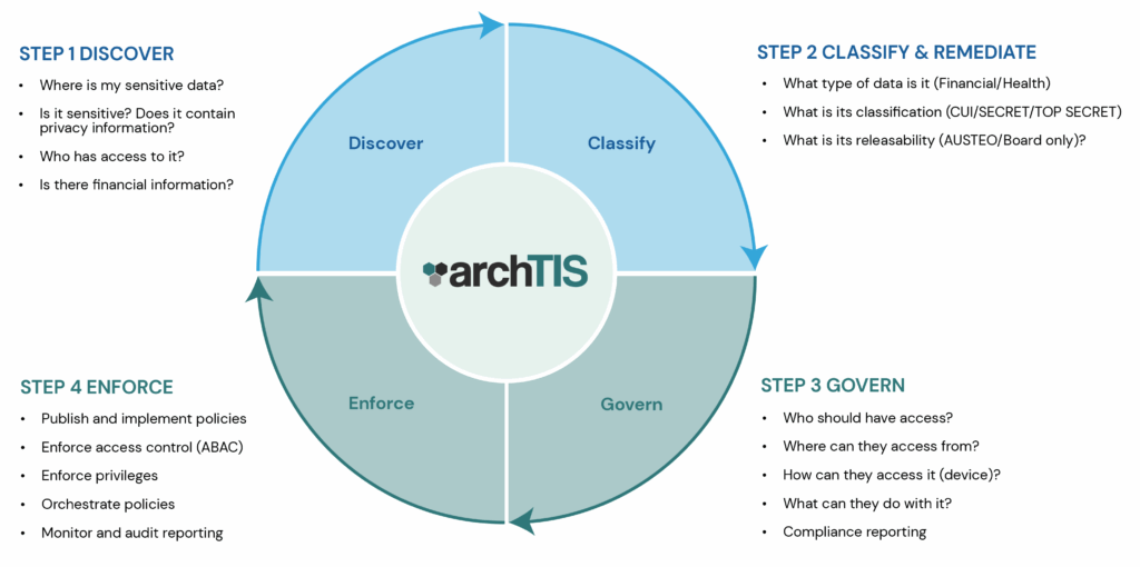 The protection of sensitive data can be summarized in four critical steps: discovery, classification, governance and enforcement.